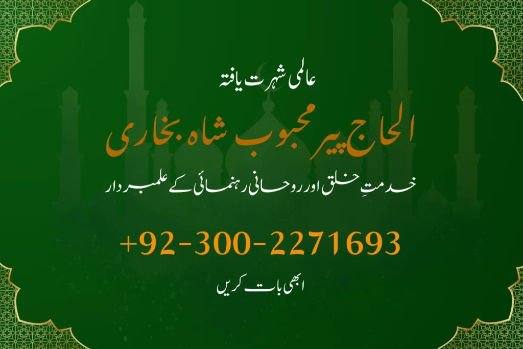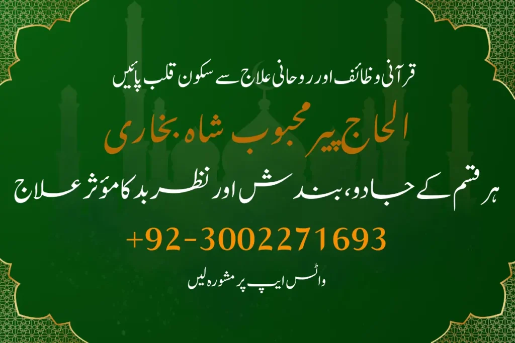 Al-Haj Syed Mehboob Shah Bukhari is a renowned spiritual healer dedicated to helping people overcome life’s challenges through trusted spiritual practices. He offers services like oOnline Istikhara and Rohani Ilaj for Love Marriage Kala Jadu Ka Tor and Spiritual Healing special prayers for desired marriages (Manpasand Shadi), and personalized Wazifas Online Istikhara & Rohani Ilaj for Love Marriage Kala Jadu Ka Tor. With compassion and experience, he is here to guide and support you.
